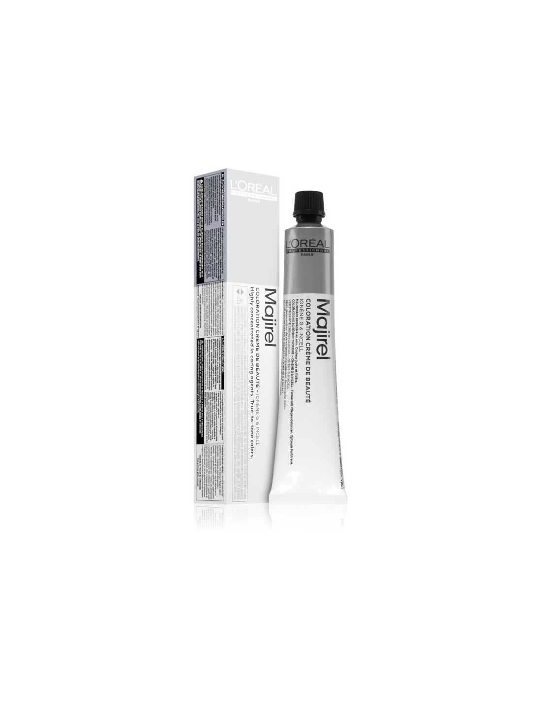 Coloración MAJIREL Profesional de cabello de extrema suavidad gracias a los activo Ione G E Incell que fortalece y refuerza el cabello. El resultado es un cabello rico en brillo, con una cobertura del 100% de la cana.